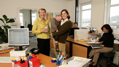 Die bessere Vereinbarkeit von Beruf und Familie hängt zu einem großen Teil von praxisnahen Angeboten zur Kinderbetreuung ab. Seit 2004 bieten wir die hausinterne Betreuung der Kinder unserer Mitarbeiter an.