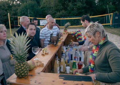 Natürlich wird auch wieder unsere (Strand) Cocktailbar aufgebaut - mit den beiden Barkeepern Karin und Marco.